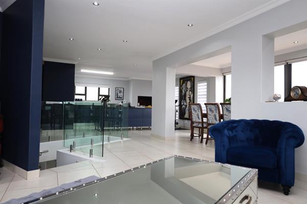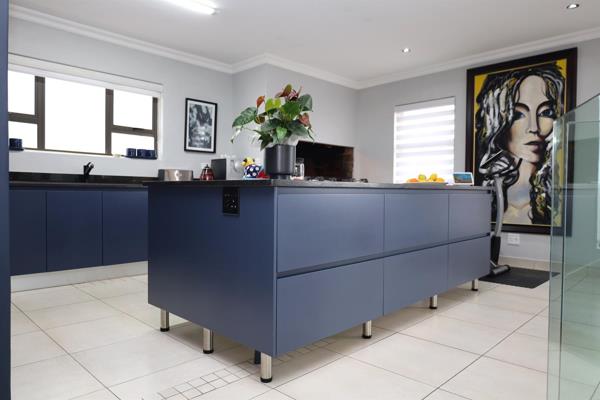 A calming yet dramatic blue interior theme runs through the house, enhanced by the extensive use of glass and light. This level is perfect for relaxing or entertainingwith stacker doors that open onto a wide balcony, inviting in the fresh sea breeze.
