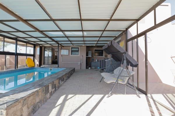 Outside, the lifestyle offering continues. The enclosed swimming pool allows for extended seasonal use, while the entertainment and braai area create the perfect setting for relaxed gatherings with friends and family. The garden is beautifully maintained, complemented by neat paving and a welcoming driveway that enhances the homes overall kerb appeal.