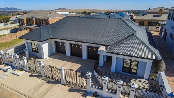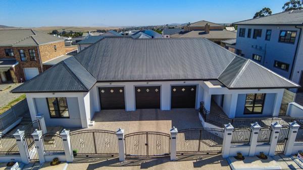 The entrance invites you into this 410 sqm under roof house, it is designed to accommodate modern family living with ease. A triple garage with a paved driveway set the tone for the residence. Inside, a seamless open-plan layout connects two lounges and two dining areas, providing ample space for both relaxed family living and formal entertainment.