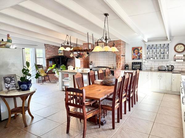 A traditional farm-style kitchen with ample cupboard space, a separate laundryscullery, and a wood-burning fireplace&mdashideal for cozy winter evenings.