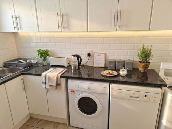 The Studio Suite: The third bedroom is located upstairs and functions as a private studio apartment, complete with its own kitchenette and a balcony overlooking the garden.