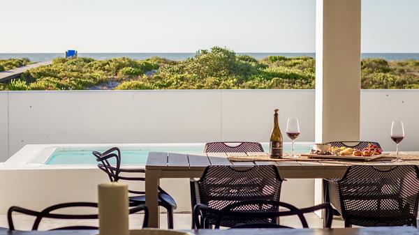 The Oasis: Enjoy year-round relaxation with a covered alfresco dining area, built-in braai, and a private heated splash pool set against the backdrop of endless horizon sunsets.