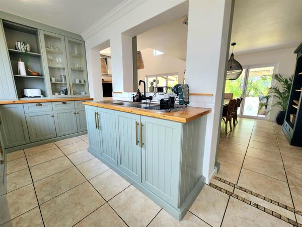 - The country-style kitchen is inviting and practical offering ample cabinetry, generous work surfaces and beautiful outlooks over fruit trees and the majestic Riebeek mountains.