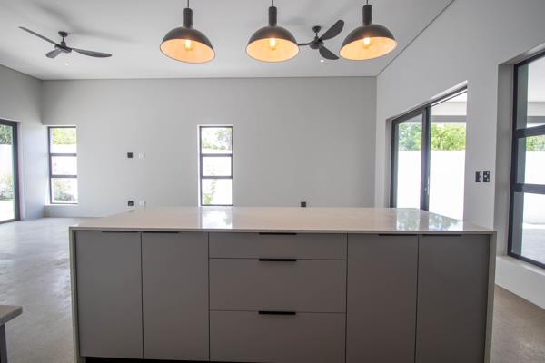 Step into a world of spacious, open-plan living where the lounge flows seamlessly into a contemporary kitchen. The kitchen is a chef''s delight, boasting ample built-in cupboards, a gas hob, electric oven, and extractor fan. A dedicated scullery provides a double basin and connections for your washing machine, dishwasher, and tumble dryer, ensuring effortless functionality. Large sliding doors in the living area open onto a charming undercover braai area, perfect for entertaining or simply relaxing outdoors.