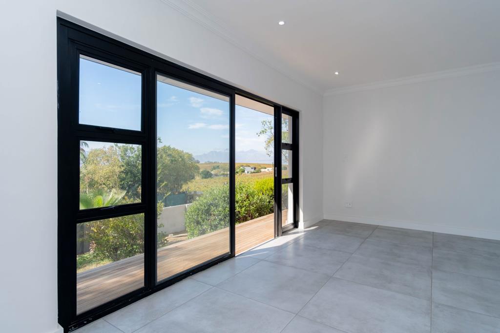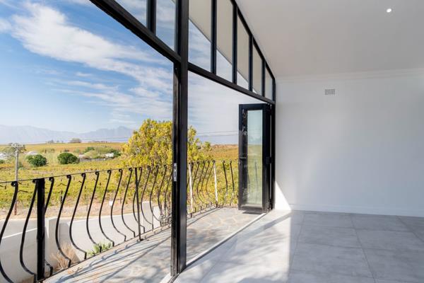 Lovingly refurbished from top to toe. EXCLUSIVE MANDATE: No stone has been left unturned to bring this beautiful home into the 21st century and you can be the first person to enjoy this new refurbishment. The footprint of the house has been changed to allow for 3 large reception rooms as well as a luxurious en-suite bathroom with a private outdoor shower. Views over the vineyards and mountains have been maximized by the addition of large windows and stack doors, creating a light and airy interior. Exposed trusses add to the experience. A separate pantry and scullery compliments a well equipped and modern kitchen, all finished to a very high standard. The private garden, with swimming pool and veranda, creates the prefect setting for alfresco dining. This move in ready home are for those who relish stylish living.
