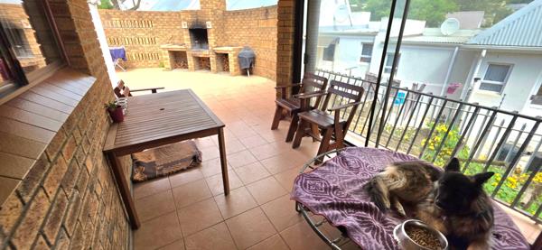 Outdoor living is facilitated by a spacious patio, ideal for relaxation and entertaining, featuring a built-in braai with convenient wood storage. The established garden and paved areas offer a serene environment with scenic mountain views. Further enhancing utility are a versatile flatlet, domestic room, outside toilet, a dedicated laundry area, and ample storage. Security provisions, including burglar bars, a security gate, and perimeter fencing, ensure peace of mind. The property benefits from water tank and a borehole, enhancing water resilience, and is pet-friendly.