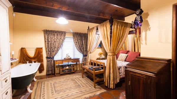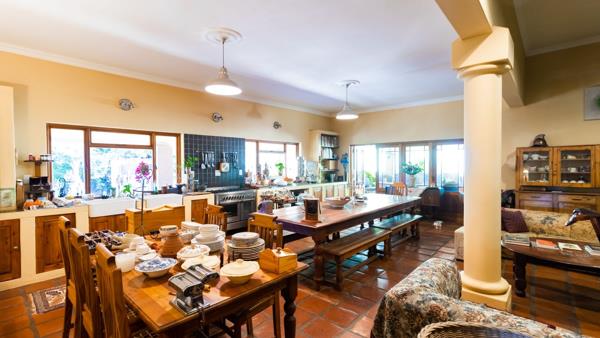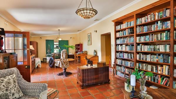 3 bedrooms all with their own en-suite bathrooms, a large entrance hall or studio or library, an amazing kitchen with separate scullery and pantry diningroom and lounge, and then leading out onto the wide back veranda with BBQ looking up toward the majestic Kasteelberg mountain.