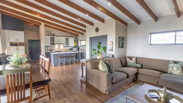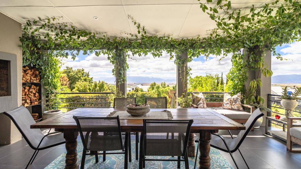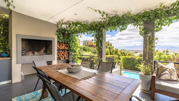 Enjoy year-round entertaining with a covered patio featuring a built-in BBQ (braai), overlooking a sparkling splash pool nestled into a raised terrace. The garden is home to fruit trees, adding charm and a touch of sustainability. A modern pergola sits gracefully at the lower end of the property ideal for relaxation or hosting guests.