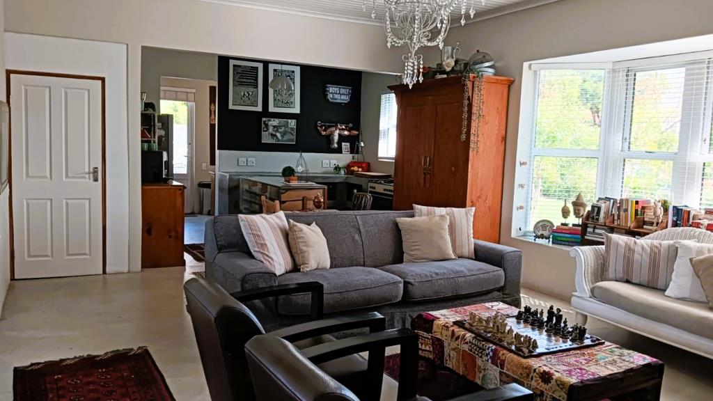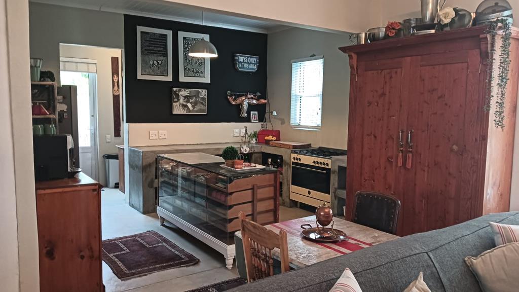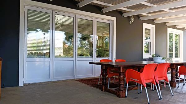 Designed with entertaining in mind, the expansive stoep is an ideal spot for alfresco dining or simply relaxing under the stars, surrounded by mature trees. The stoep seamlessly connects to the open-plan living area, with stacker doors that open wide to create a harmonious flow between the indoor and outdoor spaces. The kitchen, with its rustic charm, is equipped with a separate scullery and leads to a private, secluded courtyardperfect for quiet moments or a small garden retreat. Additional features include a double carport, a refreshing pool, a borehole, and a security alarm system for peace of mind.