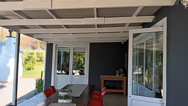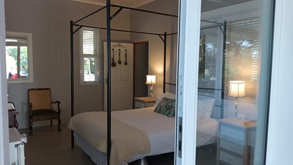 The first property boasts a beautifully maintained, elegant home that perfectly complements its surroundings. This charming house features two spacious bedrooms, both with en-suite bathrooms. One of the bedrooms enjoys the added benefit of a separate entrance from the covered stoep area, offering enhanced privacy and versatility.