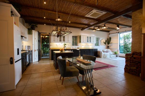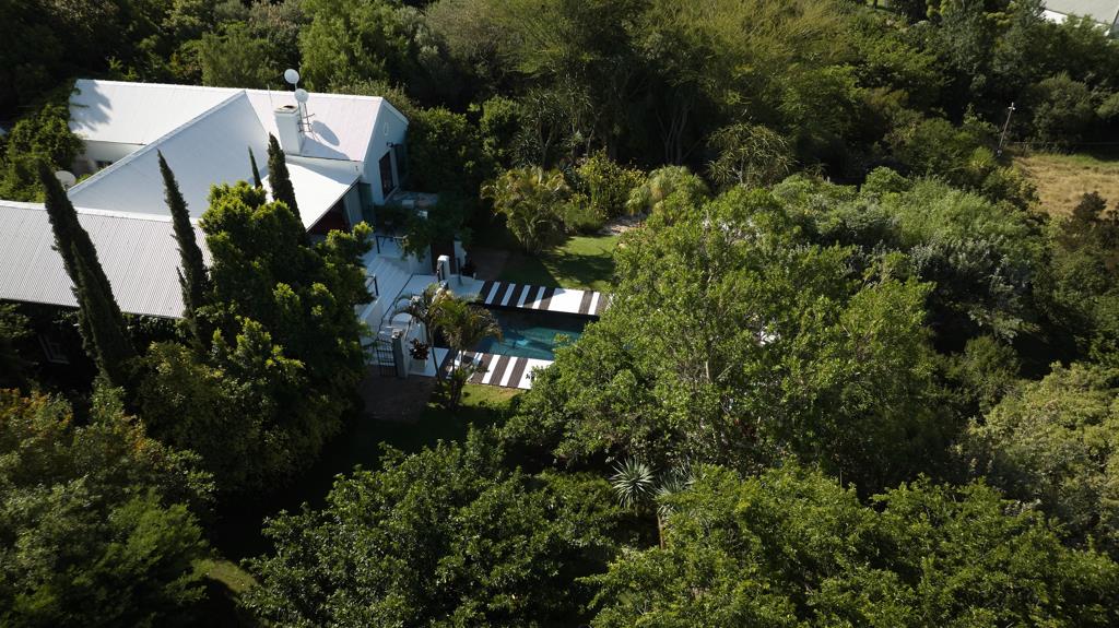 Perched high on the hill with panoramic mountain vistas, the estate enjoys its own private borehole supplying potable water, along with 25,000 litres of storage. A large pool with a cascade water feature, together with a gentle stream and tranquil fish ponds, completes the serene ambience.