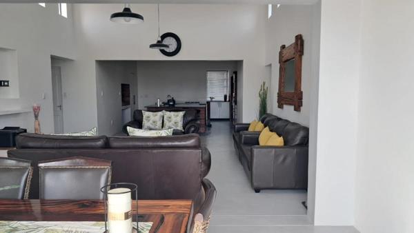 - The open plan dining room and living area feeds off into the living room with a second indoor braai or