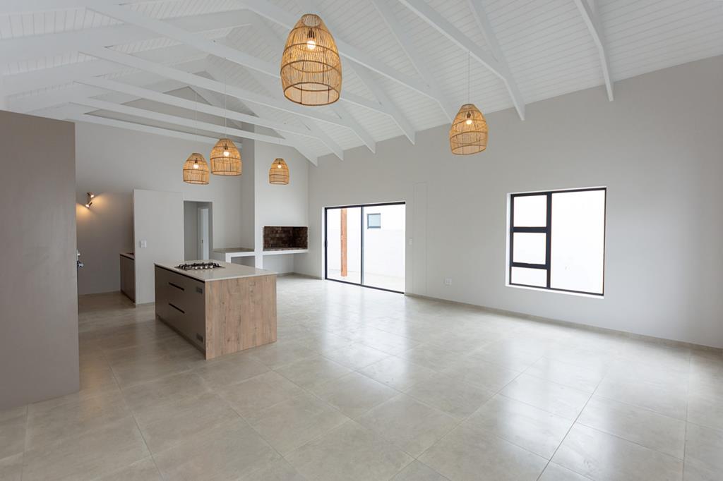 The spacious open-plan kitchendiningliving and braai area is bathed in natural light, creating a bright and airy space that is perfect for both relaxation and entertaining.
