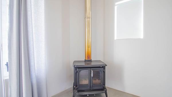 Open-plan living and dining area with cozy fireplace ideal for the colder West Coast winter months.