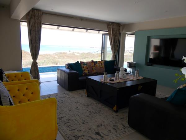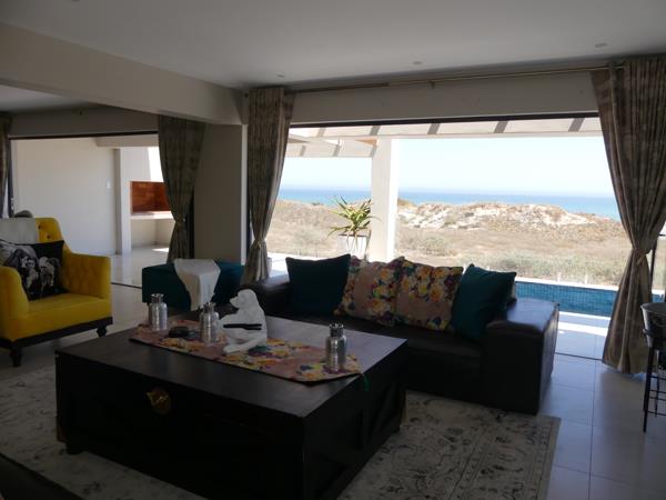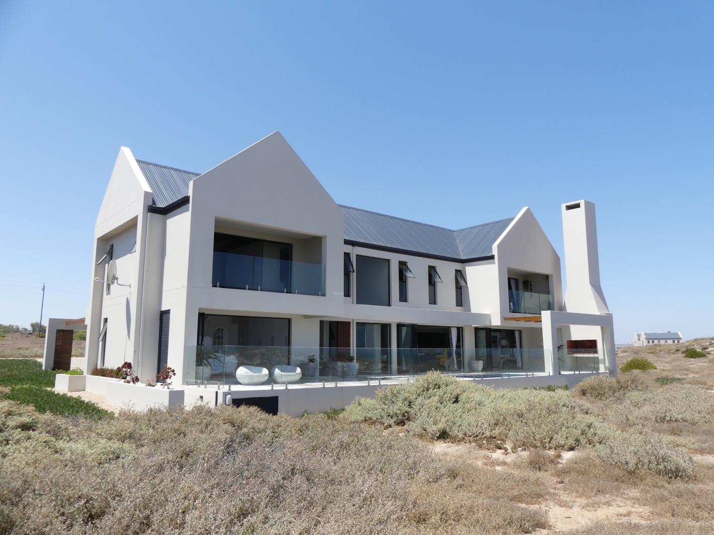 SOLE MANDATE - This stunning well-designed 5 bedroom Beachfront home is located on the pristine coastline and offers absolute luxury living in the most beautiful spot on the West Coast. The home makes the most of its natural surroundings by embracing a fresh and modern design. Furthermore the strategically located stacking doors extend the living area outwards onto a sheltered patio with a built-in braai, swimming pool and lovely views to the ocean. The master bedroom is a work of art offering a brilliant full en-suite bathroom, walk-in wardrobe and stacker doors leading to a private patio with stunning ocean views.