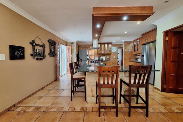 The homes heart is its open-plan living area, where a spacious, modern kitchencomplete with a discreet sculleryflows effortlessly into a welcoming lounge. A wood-burning fireplace anchors the space, promising cozy winter evenings, while the adjacent formal dining room sets the stage for memorable family gatherings and dinner parties.