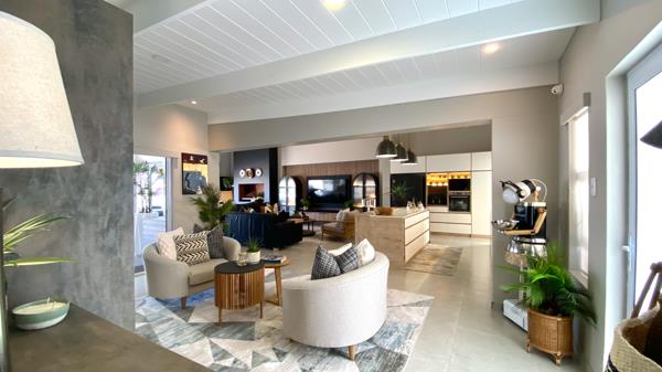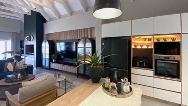 The entertainment area, with an indoor braai, is truly special: The space flows directly onto a fantastic patio. This patio is equipped with a louvered roof and shaded sides, ensuring it remains a comfortable and usable space for dining and relaxation, regardless of the sun or wind.