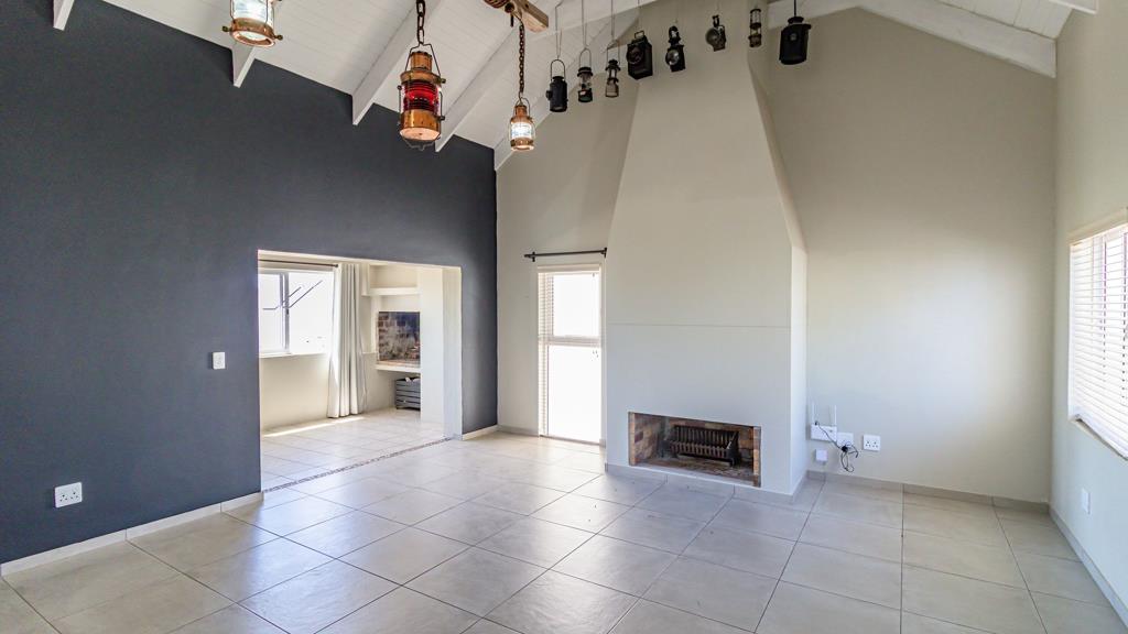 Upstairs: you are welcomed by a stylish open plan living area. Featuring striking double-volume ceilings with exposed trusses that create an airy, cool and spacious atmosphere. A built-in fireplace promises countless evenings of warm and relaxed entertaining with family and friends. The living area connects to the open plan kitchen, fitted with modern cabinetry. Another stand out feature is the braai room or dining area. An entertainers dream, featuring expansive sliding windows that flood the space with natural light and invite in the refreshing sea air. A built-in-braai make hosting effortless and enjoyable.