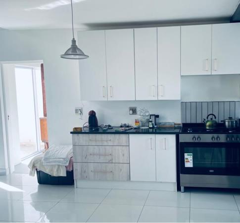 The main residence features an open-plan layout, seamlessly integrating lounge, dining, and kitchen areas, with a double-volume lounge that enhances natural light and creates an impressive sense of space. A cozy indoor fireplace provides warmth during cooler months, while the modern kitchen offers direct access to the double garage for convenience. Outdoor entertaining is a delight with a patio complete with a built-in braai, and an upstairs braai patio offers elevated views for relaxed gatherings. The main bedroom is spacious and includes a full en-suite bathroom and ample built-in cupboards. Two upstairs guest bedrooms are comfortably sized and serviced by a guest bathroom, while a downstairs guest toilet adds further convenience. Energy efficiency is enhanced with a solar geyser, and the double garage includes built-in storage and an additional toilet.