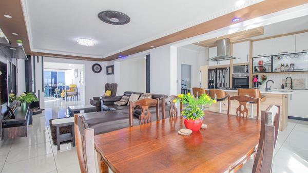 Designed with contemporary elegance in mind, the open-plan layout seamlessly blends the entrance hall, lounge, dining room, and modern kitchen into a harmonious living space. A cozy fireplace adds warmth and character, while the seamless flow to the backyard, balcony, and outdoor braai area invites effortless indoor-outdoor entertaining.