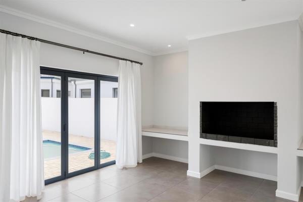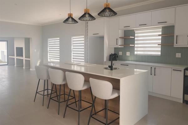 This home blends modern architecture with coastal charm. The open-plan kitchen features sleek cabinetry, black fittings, and top-quality finishes. The living and braai areas extend onto the patio through stacker doors, creating an effortless indoor-outdoor flow perfect for entertaining or relaxing poolside.