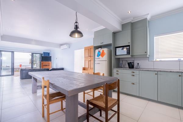 As you step onto the ground floor through the inviting glass doors, you are welcomed into an expansive open-plan dining area and a meticulously designed kitchen equipped with a SMEG oven, elegant granite counter tops, an abundance of built-in storage, and a generously sized scullery. The living room exudes an inviting ambiance with its built-in air conditioning and a gas fireplace, perfect for creating romantic moments. Sliding doors seamlessly connect this space to the wooden deck, where you can entertain friends and family around the built-in gas barbecue and relish the captivating sunset views. The ground floor is also home to the main bedroom, a true sanctuary boasting a walk-in closet and a luxurious en-suite bathroom with a shower, bath, toilet, double basin, and bidet. This air-conditioned, exceptionally spacious room extends to a patio where you can savor breathtaking sea vistas. Ascending to the first floor, youll discover two bedrooms, each featuring en-suite facilities and private balconies. These rooms are thoughtfully appointed with air conditioning, ample built-in closets, and elegant laminated flooring, offering spectacular beach front views.