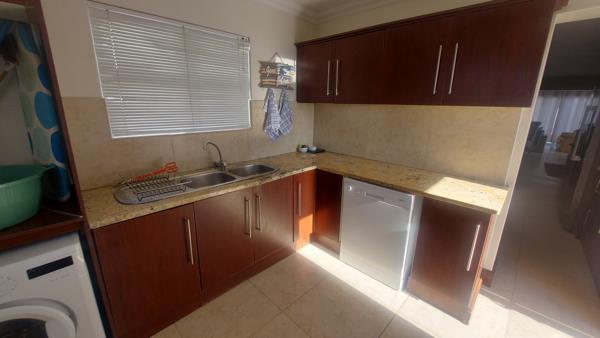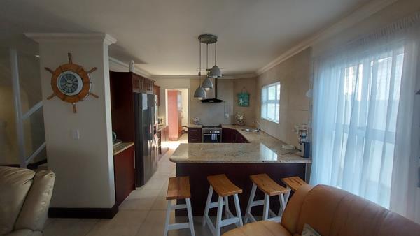 Open plan living area with built-in braai, perfect for the winter season. Open plan kitchen equipped with a large scullery area.