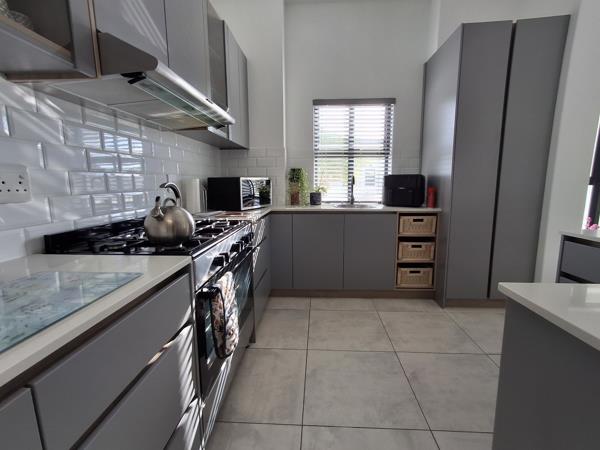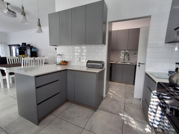 Separate scullery with ample cupboards, double sink, and space for double-door fridge, washing machine, and dishwasher.