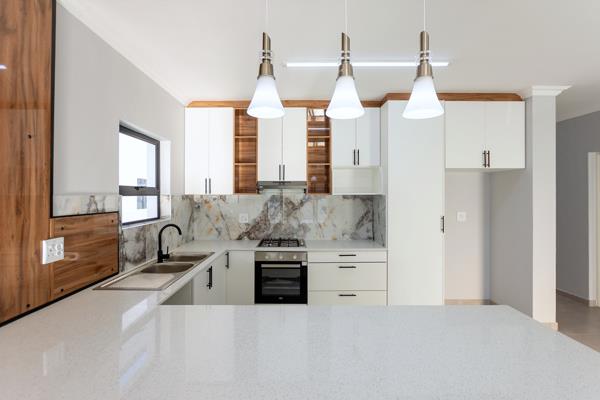 As you enter, youll be greeted by an inviting open-plan layout that seamlessly blends the living, dining, and kitchen areas, creating a warm and welcoming atmosphere. The beautifully tiled floors add a touch of sophistication, while the natural light pours in through the aluminium windows, enhancing the airy feel of the space. The modern kitchen is a chef''s dream, featuring engineered stone countertops, a gas hob, and an electric oven, perfect for culinary adventures. The breakfast nook is ideal for casual meals and family gatherings, while the built-in wardrobes in each bedroom provide ample storage without sacrificing style.