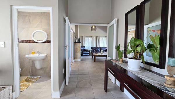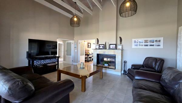 The heart of the home features an cozy living room with premium underfloor heating that flows seamlessly onto a large entertainer''s patio through multiple slider doors. The outdoor space includes a built-in braai area, perfect for year-round entertaining while enjoying those spectacular sea views. The living and dining rooms are elegantly divided with a double-sided fireplace. Having the fireplace serve both the living and dining rooms makes the space feel more cohesive while still maintaining the separate areas. . The dining room, also featuring underfloor heating, flows effortlessly into the kitchen and scullery area.