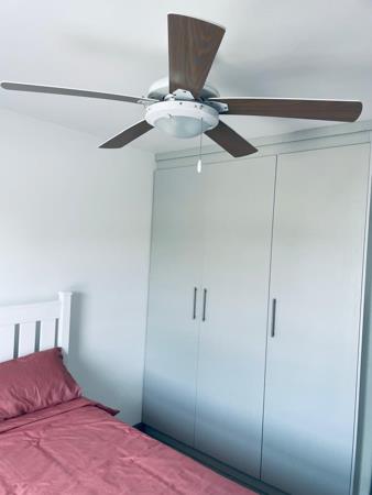 Bedrooms: Two well-appointed bedrooms with built-in cupboards, ceiling fans, and internet ports.