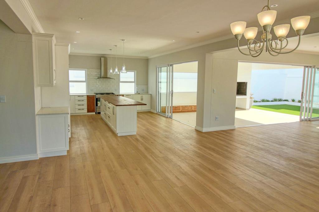 * Open plan kitchen, lounge and dining areas, opening up to the outside braai area with large glass sliding doors