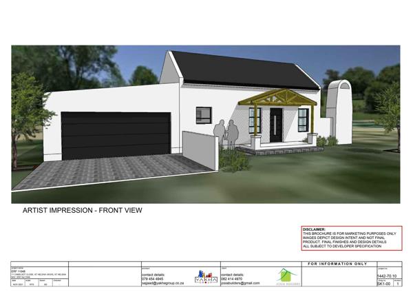 This brand-new 3-bedroom plot and plan house is now available in the highly sought-after Kapteinskloof area of St Helena Views. Perfect for first-time homeowners or those looking to downscale and retire to a relaxed coastal lifestyle, this home is being constructed by a building contractor renowned for quality work and top-notch finishes. Situated in a quiet cul-de-sac in the peaceful and picturesque town of St Helena Bay, the home will feature a large open-plan living room, a spacious dining area, and a state-of-the-art kitchen opening onto a patio with a built-in braai, ideal for entertaining.