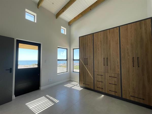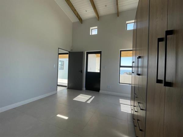 Three-bedroom, two-bathroom house in St Helena Views, built with efficiency and modern systems. The house sits on a 454 m2 erf, with 142 m2 under roof. The kitchen and bedrooms have built-in cupboards. The home includes a gas geyser, solar panels, an 800 L water tank, fibre ready and air-con point in the living room. One garage is provided. Gardens are landscaped for low maintenance.