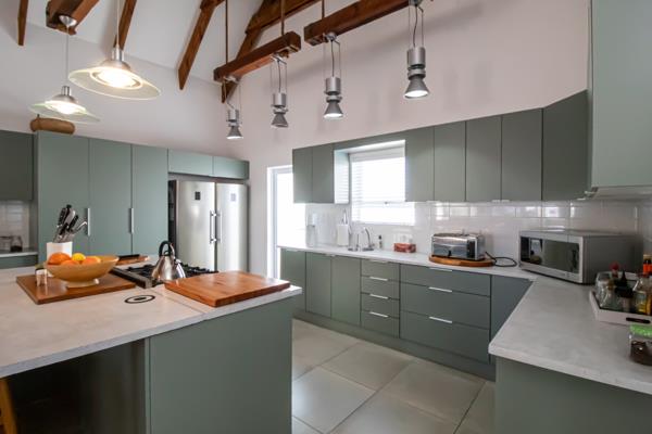 The kitchen is a chef''s dream, complete with sleek modern cupboards, gleaming quartz countertops, and a gas stove. A separate scullery neatly houses the dishwasher and laundry facilities, keeping the main kitchen clutter free.