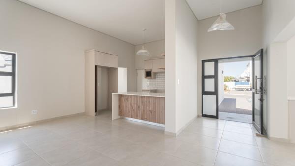Discover your dream home in the highly sought-after Dolyfynstrand, Dwarskersbos! This brand-new residence, built by a reputable local builder, is just a stones throw away from the beautiful, safe sandy beach of Dwarskersbos. The home boasts a stunning double-volume living room that seamlessly connects to an open-plan kitchen, complete with a convenient scullery and laundry room. Youll love the impressive braai room that opens up to a private courtyard, perfect for entertaining. The property features three spacious bedrooms with built-in cupboards and two elegantly tiled bathrooms with modern finishes main-en-suite. An oversized double garage with wonderful storage space & direct access to the house adds to the convenience.