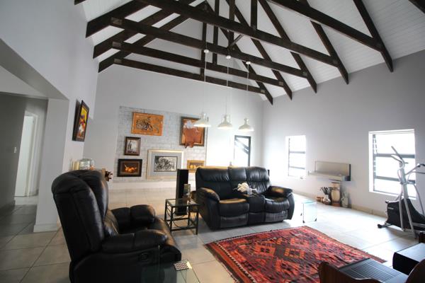 Upon entering, you will be greeted by the open plan living room that exudes space and grace. The high ceilings, exposed trusses, and large tiles add to the overall ambiance of the home. The kitchen is every home cook or gourmet chef''s dream, featuring a centre island with plenty of cupboard space and modern, calming touches.
