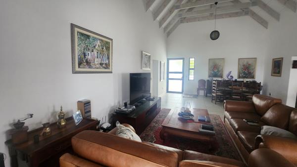 The living area, with its vaulted ceilings and exposed trusses, is spacious and connects to the dedicated braai room through a sliding door. The braai room, in turn, invites the outdoors in via stacker doors that open the whole side, yet keep the winter weather at bay when needed.