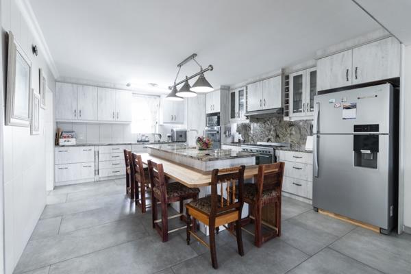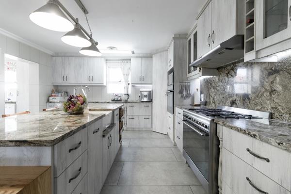 The kitchen is a chef''s dream with ample cupboards, marble countertops, a gas stove, and a scullery with extra storage space.