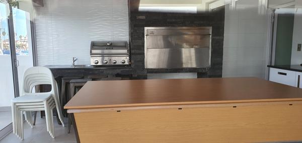 All these rooms have stack doors, which open out onto a magnificent patio, sparkling pool and sunken braai pit, then you step down off the patio onto the marina, and into the boat that awaits you.