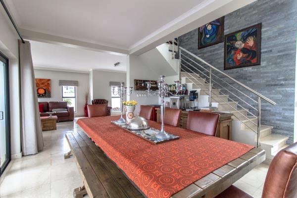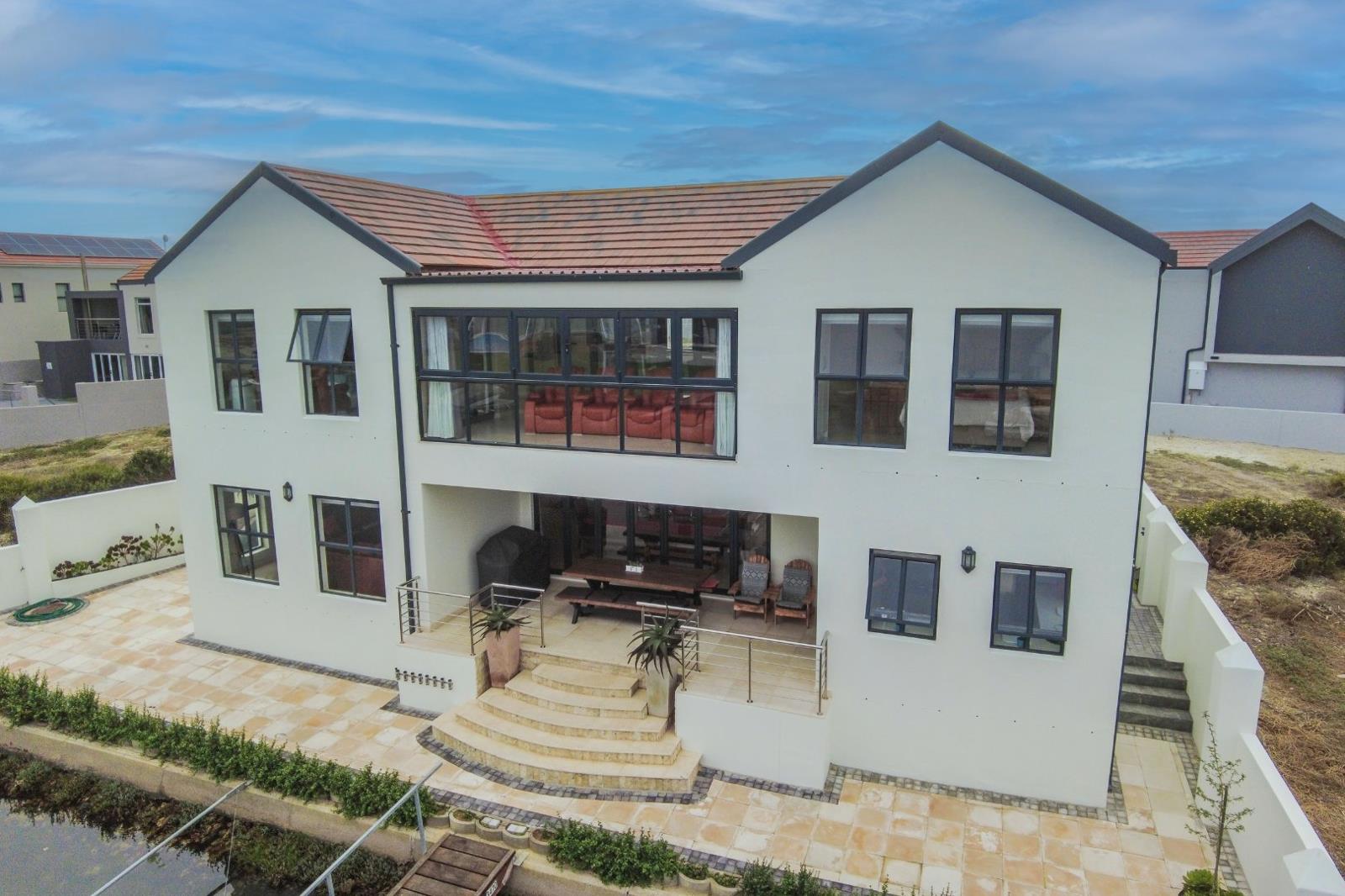 Welcome to this beautiful waterfront island style home on the famous Admiral Island Security Estate. This home is situated in Flamingo Cove on Admiral Island - on the water with its very own jetty. A welcoming, double volume entrance hall leads into the expansive open plan living area, consisting of the dining and open-plan lounge with folding stack doors leading onto the outside stoep area. The kitchen, with hidden scullery, also leads onto the outside stoep. Cook your favourite meals with the stunning views of the canal and flamingo cove.