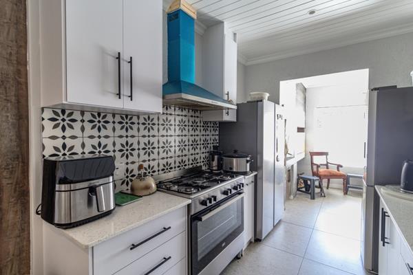 The heart of the home is the large open-plan living area, featuring a galley-style kitchen with ample built-in cabinetry, that seamlessly flow to the indoor braai perfect for year-round entertaining. There is a completely separate and practical scullery with laundry facilities right next to the kitchen.