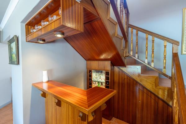 A guest bedroom and bathroom with walk-in shower completes the picture downstairs. A custom wooden bar and storage cabinets has been incorporated underneath the staircase, an often-neglected space in any home.