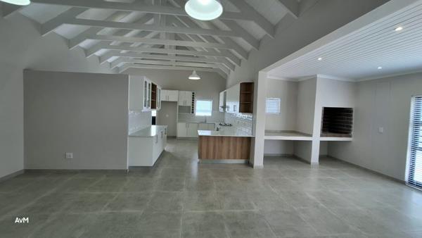 The interior boasts an open-plan layout, creating a seamless flow between the living spaces. The property features a spacious lounge and a dedicated dining room, providing ample room for both everyday living and entertaining. The well-equipped kitchen is central to the home''s design, facilitating easy interaction. A highlight is the dedicated braai room, complete with a built-in braai and a cozy fireplace, perfect for year-round enjoyment. Sliding doors enhance the indoor-outdoor connection, allowing natural light and fresh air to permeate the home.