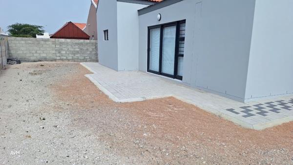 Externally, the property is designed for practicality and ease of maintenance. It features a single garage and two additional parking spaces, accommodating multiple vehicles. The erf is totally walled, providing a secure and private environment, and includes paving and a driveway for neat access. Pets are allowed, making it a welcoming space for the entire family.