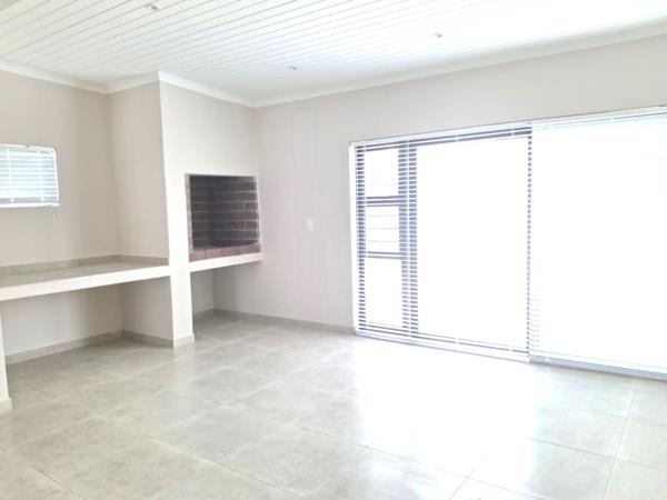 Every detail in this residence has been well thought out, resulting in a sleek and stylish living space. The design flows effortlessly, starting with the expansive, open-plan area combining the lounge, dining room featuring a fantastic built-in braai, and a kitchen designed for both beauty and function, complete with extensive cupboard storage.