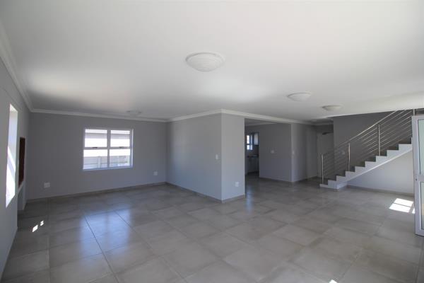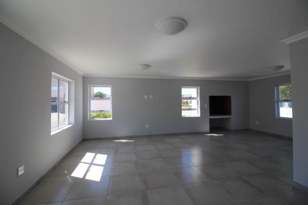 Immaculate large open plan lounge and dining area, tiled, with built in braai.