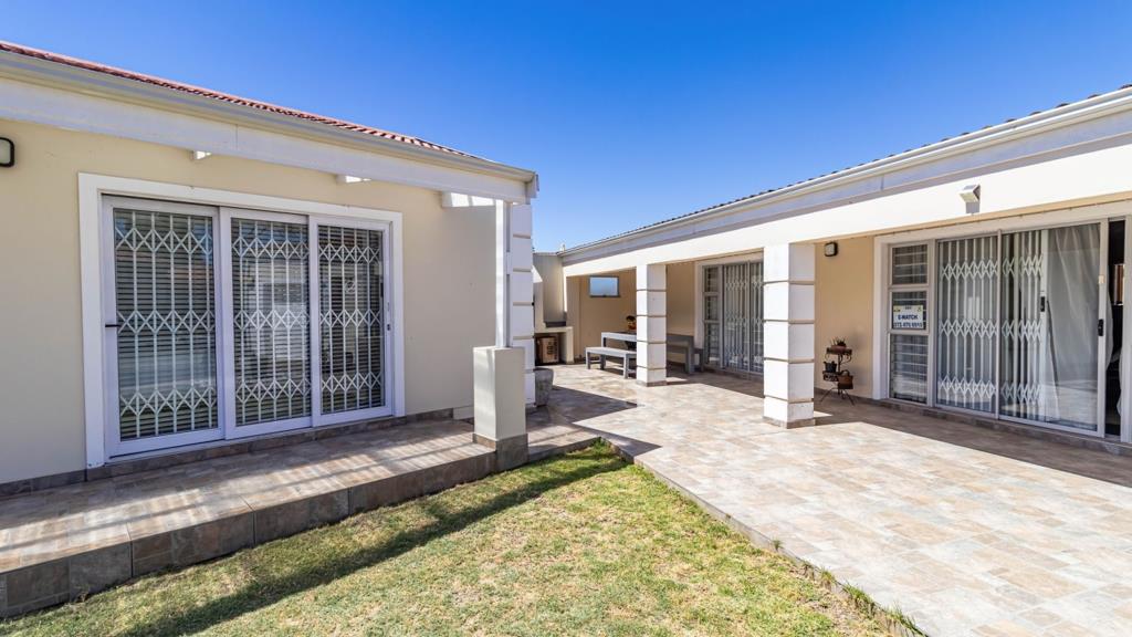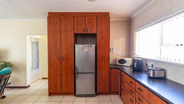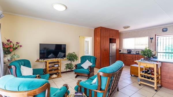 The main home welcomes you with a charming undercover veranda and an outdoor built-in braai, the perfect spot to unwind or entertain. Step inside to a warm and open-plan living space that seamlessly blends the lounge, dining room, and kitchen, creating an easy-flow lifestyle.