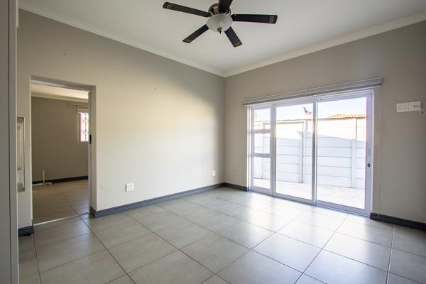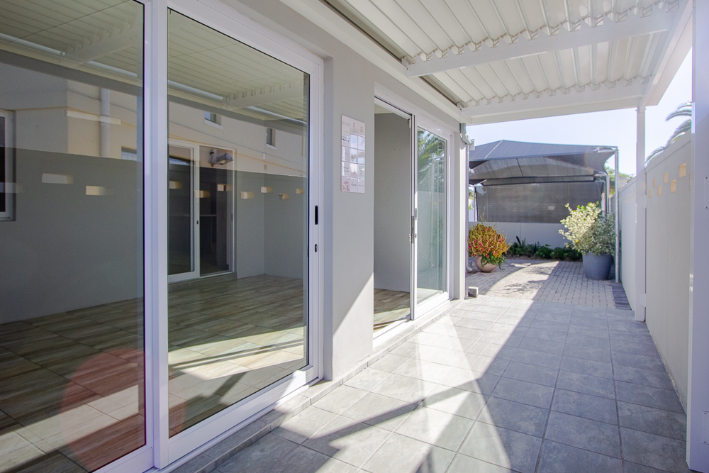 The living area is all open plan with a built-in stainless steel braai, and sliding doors to the patio.