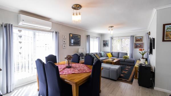 An open-plan lounge and dining room with air conditioning for added comfort.Glass sliding doors leading to the veranda with built-in braai and views of the river.A generous study, ideal for remote work or hobbies.A modern kitchen boasting quartz countertops, ample cabinetry, a 4-plate gas hob, built-in oven, and a scullery with space for a dishwasher and washing machine.The luxurious master suite features built-in cupboards, sliding doors to a private patio, and an ensuite bathroom with a bath, shower, basin, and toilet.Additional Features: